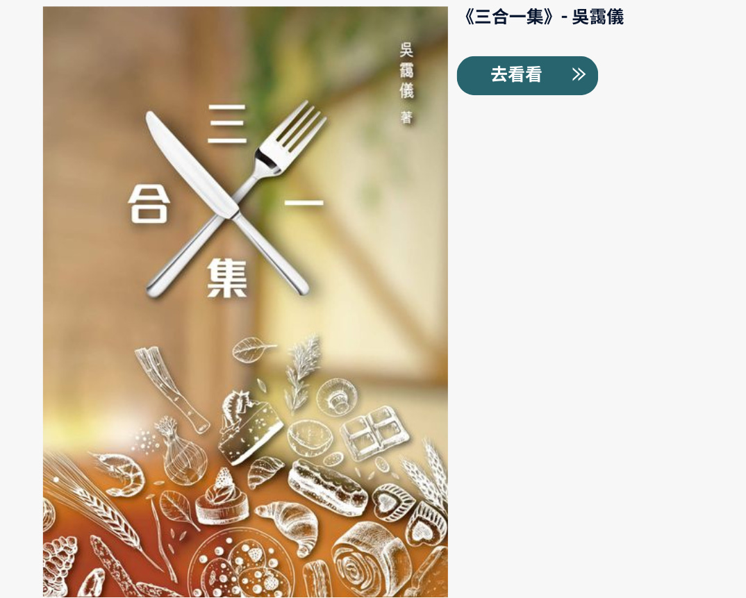 本書集合了吳靄儀先前出版的《整餅集》、《小鮮集》,以及近年一些未經結集的專欄雜文,是為三合一集。