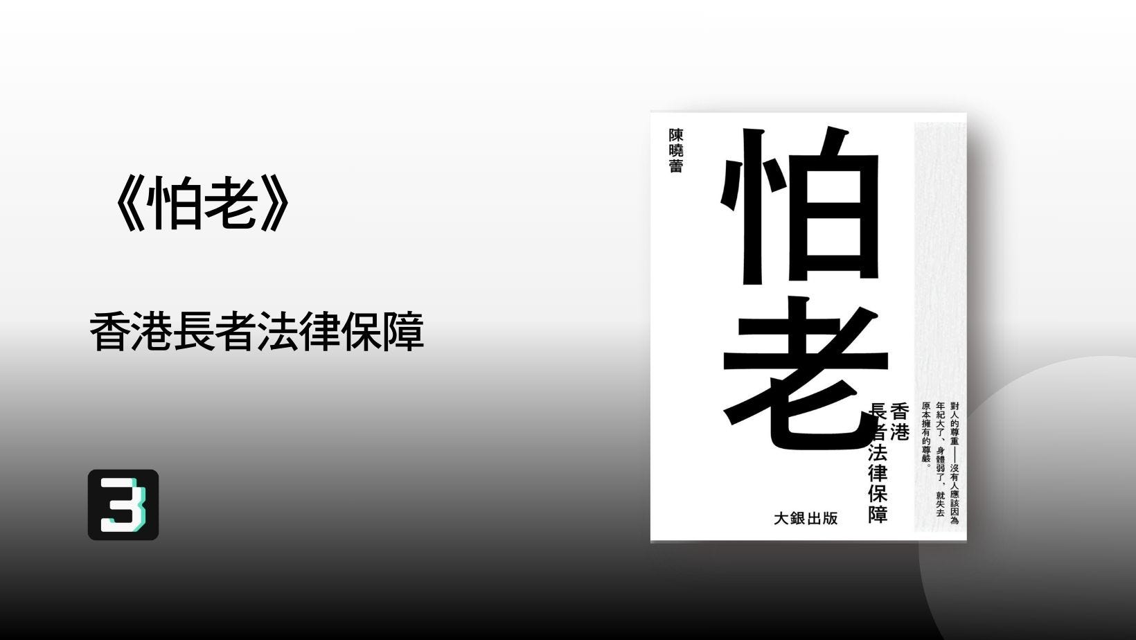 《怕老》的副題是「香港長者法律保障」,書中提供的,不只是倫理上的思考,更多是法律有什麼保障或關卡,輔以真實案例,並提示執行時各種細節有什麼要關注的地方。香港人都是 deadline fighter,很多人「臨門一腳」才想到立遺囑或設立持久授權書,會造成什麼問題?沒結婚沒子女的香港人越來越多,很多人想訂立持久授權書,卻找不到能信任又較年輕的受權人去執行及處理財產;安老院常見長者因病被「約束」綑綁,法律上又有何保障?