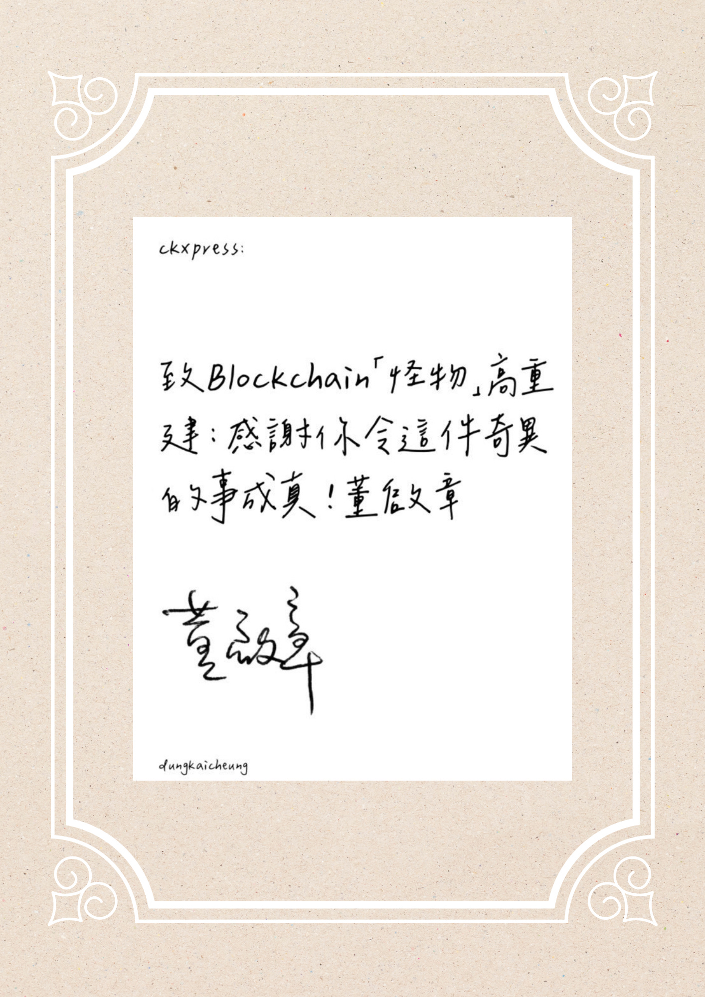 目前作者已可在每一本書上留言,那是一筆不可竄改的鏈上記錄,但讀者未必很有感。現在 Liker Land 正進一步開發「簽名頁」的新功能,把那句留言和作者的親筆簽名化為一頁封底頁,插進電子書檔 (PDF/EPUB) 中去。你擁有的將是名副其實,獨一無異專屬於你的 NFT 電子書。