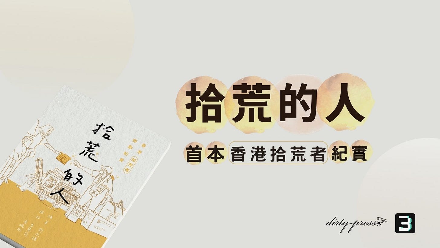 雖然「報紙婆」並不屬於這本書筆下的「拾荒者」,但開始閱讀時,腦海中第一個浮現的就是她。也因為她,原以為自己對「執紙皮」已有一點認知,看下去才發現,原來過往所見不過是皮毛。稱呼她為「報紙婆」,就像老一輩叫街市檔販「賣菜婆」、「豬肉佬」一樣,毫無貶意,純粹是直接、夠「庶民」。書中首先也探討了「拾荒者」這個名詞,引述了學者意見指出,這並非一個污名化的稱號。書中亦提到,拾荒者對稱呼的期望,調查顯示最多人接受的是「伯伯婆婆」、還有「環保先鋒」或「回收工作者」。不同的稱呼,確實也更立體地呈現這群「非正式工人」的身份。